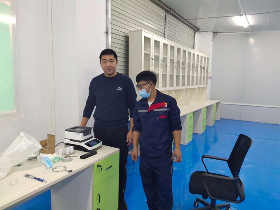 用戶本次采購的是我司一批實(shí)驗(yàn)室器材,分別為:VM-E01型鹵素水分測定儀、AC200型電子天平、WKT-300A型固體密度計(jì)、WKT-400T型熔體流動(dòng)速率儀,WKT2-12-12型馬弗爐。維科美拓技術(shù)服務(wù)人員剛到客戶廠時(shí),客戶廠里環(huán)氧地坪剛建好2天,實(shí)驗(yàn)室整體環(huán)境可以,暫未安裝空調(diào),木質(zhì)辦公桌臨時(shí)充當(dāng)試驗(yàn)臺(tái)。電工臨時(shí)接線插座,實(shí)驗(yàn)室只有220V電,沒有380V電源,馬弗爐拉到配電房附近臨時(shí)安裝通電。