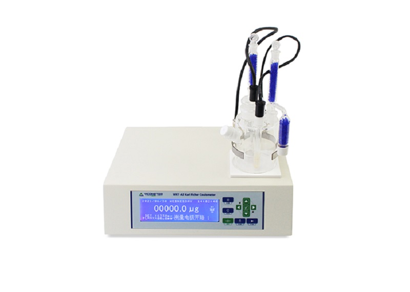 WKT-A2"入門型"卡爾費休水分儀利用的是庫侖法(電量法)原理測定樣品中的微量水分,測定水分低至1ppm,可以在1分鐘內測定出固體、液體、粉體的微量水分。人機界面友好,240*64藍屏液晶顯示,全中文菜單,儀器內置多種類計算公式,可以直接顯示樣品的%和ppm水分,并有打印接口,可選配微型打印機,廣泛應用在化工、石油、醫(yī)藥、電力、食品、科研、檢測等行業(yè)。