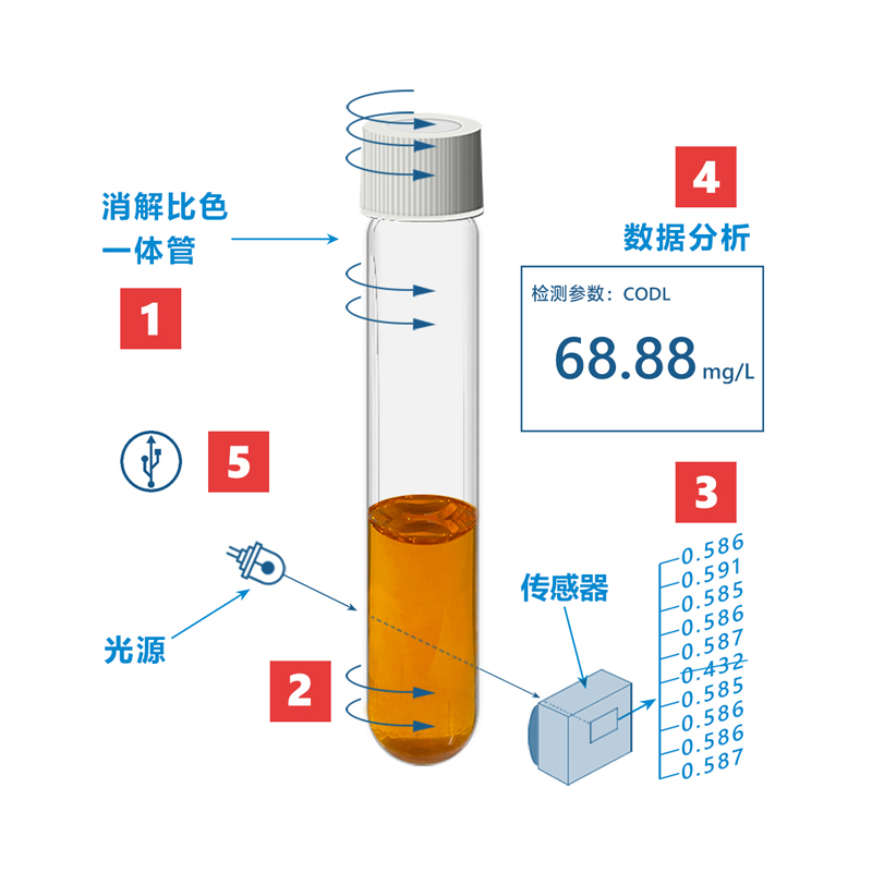 消解和讀取共用一支管,無需將液體轉(zhuǎn)移到比色皿檢測,簡單、安全無憂。